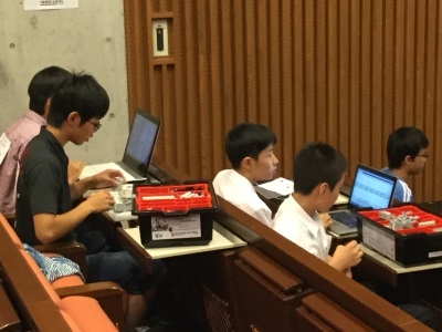 という動きを、作成したロボットに事前にプログラミングし、自律的に行わせる、というものです。プログラミング未経験者にはかなりハードな課題ですが、どのチームも優勝を目指し、念入りに調整作業に取り組んできました。