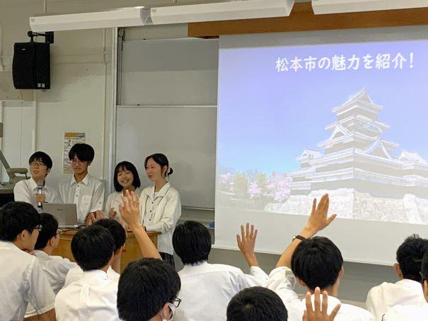 本校生徒は学校の紹介とともに、地元松本市の「ガク都」としての魅力についても紹介しました。短い時間でしたが、他校の生徒たちも興味津々で、きっと近いうちに松本市を訪れてくれることでしょう。