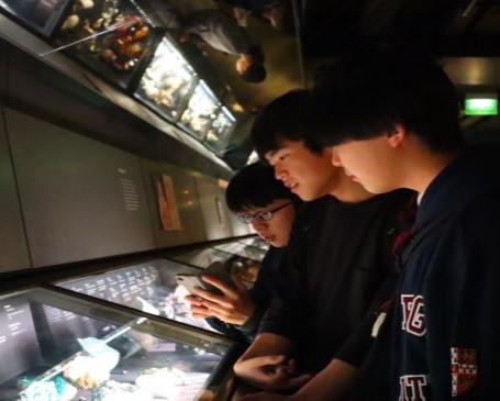 まずは、「ロンドン自然史博物館」では、圧巻の動物のはく製や恐竜の化石、海の生物などを探究学習。日本の展示方法とは異なる角度での紹介は、とても新鮮だったようです。