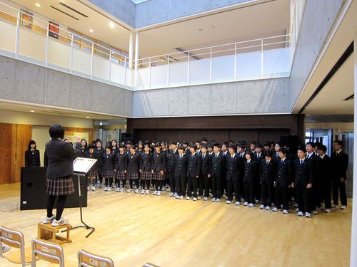 式に先立ち各学年合唱があり、本校舎アトリウムに素晴らしい歌声が響き渡りました。