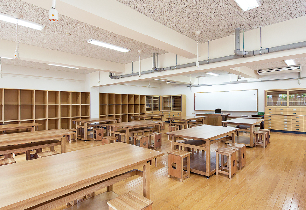 自然素材を多用した明るく優しい風合いを持つ空間は、生徒の情操と健康面に好影響をもたらします。