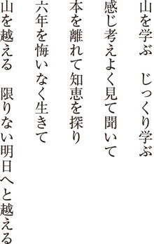 山岳都市松本を象徴する山なみと大きく羽ばたく翼で、松本の地から洋々たる未来へ向かって飛び立つ、強い自立の意思を持った人間に育ってほしいという思いを表現しました。