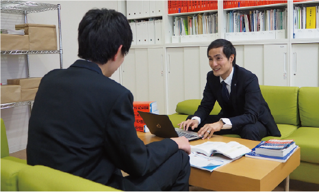 一人ひとり異なる進路実現に向けて随時、個別相談を行っています。生徒それぞれの実状を把握し、6年間を通して自己実現のイメージを醸成し、進路目標と達成方法をアドバイスしていきます。