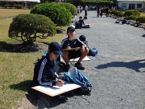 2014.10.14 1学年「写生会」 Tweet 10/10(金)1学年では,松本城と旧開智学校にて写生会を行いました。 一人一人が自由に場所を決め,写生をしました。観光客の方に話しかけられたり,外国の方と英会話をしながら,楽しんで取り組んでいました。 作品は美術の授業で仕上げ,「松本城・旧開智学校絵画展」に出品します。 前の記事 次の記事