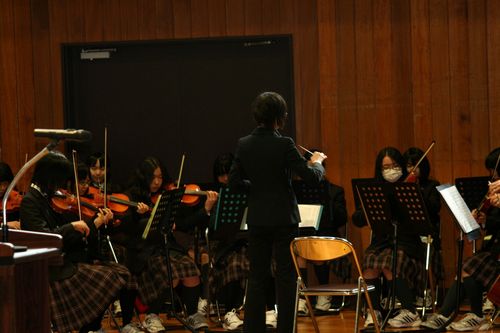 また、4月8日に第1回「定期演奏会」を控えたオーケストラ部の演奏による校歌斉