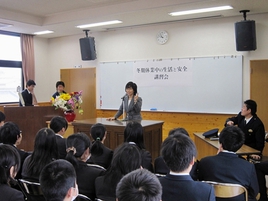 12/22(木)、全校生徒を対象とした"冬期休業中の生活と安全"講習会が開かれました。 警察署よりお...