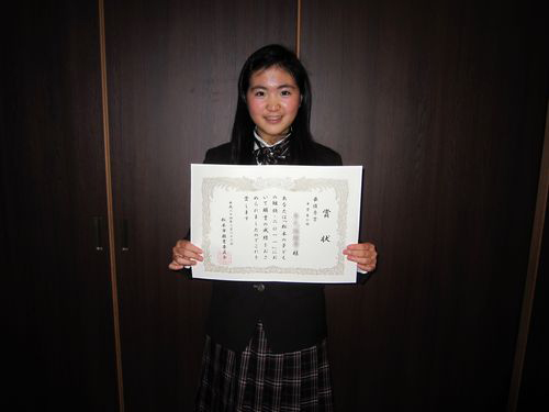 2月22日に本校で表彰式が行われ、最優秀賞1名、空穂会賞2名が表彰を受けました。緊張した面持ちでしたが、窪田空穂記念館の方から「素晴らしい作品だった」とお褒めの言葉をいただくと、嬉しそうに笑顔を浮かべていました。