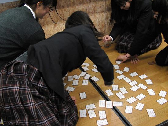 毎年年明けに行われる百人一首大会に向けて、二年生が自主的に練習をしています。 上の句を詠み始めると...
