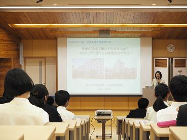 長野県で生まれ育ち、医師として活躍する先生が、医療関係ではたらくことのやりがいを信州大学医学部の魅力を交えながらお話してくださいました。先生は小児消化器分野をご専門にされ、具体的な事例を用いながら研究や診療についてお話くださったため、生徒は大変興味をもって参加できました。また、途中、アクティブラーニングも取り入れられ、同じ志をもつもの同士が交流する姿は見ていて喜ばしいものでした。