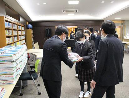また、新しい教科書が生徒たちの手に渡りました。小学校の教科書との違いに驚く生徒、早速全ての教科書に目を通す生徒など、秀峰の授業に期待を膨らませている様子でした。