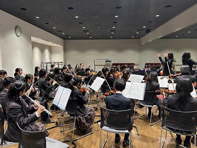 12月25日は本校オーケストラ部が演奏を行い、ビゼー作曲《カルメン》より「アラゴネーズ」「間奏曲」「闘牛士」の3曲を披露しました。これまでの練習の成果を発揮し、迫力と表現力のある演奏を目指して、一人ひとりが集中して舞台に臨みました。