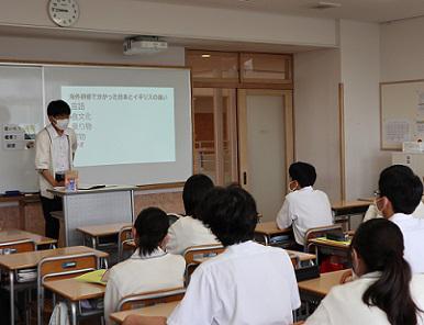 昨年度、全国中学ビブリオバトルに挑戦するなど、読書に対して熱い想いを持つ生徒が、書籍を紹介しながら、読書の意義についてプレゼンテーションを行いました。