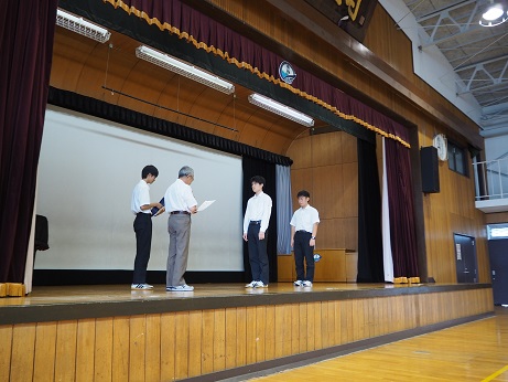 7月初めのふれあい集会では、本校で学ぶことになった交換留学生からの挨拶と、表彰が行われました。
