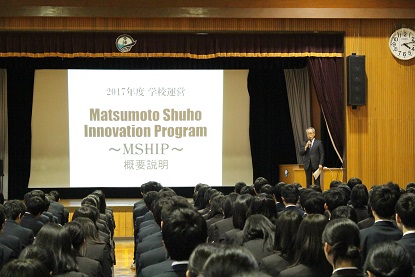 4月6日(木)、秀峰生一人ひとりが自ら求めて動き、主体的かつ独創的な活動を展開していけるように学校全体で支援していく新たな取り組み――Matsumoto Shuho Innovation Program (MSHIP)についての説明会がありました。