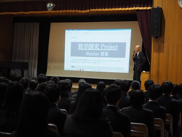 次に、これから始動するMSHIP活動の一例として、ロボコンProjectや数学探求Projectについての説明がありました。生徒の多種多様な興味や関心を尊重し、異学年集団で展開されるMSHIP活動の説明に、生徒一同熱心に聞き入っていました。