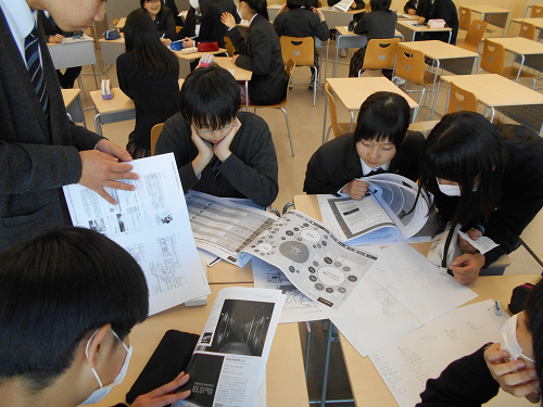 そのようにして培った自己表現力と活発なグループ活動を基盤として、現在は「夢の大学を作ろう」というプロジェクトを行っています。生徒たちは、5月に東京の大学を訪問した経験を生かしつつ、様々な大学案内を分析的に読みながら、大学に行く意味や自分にとっての理想の大学像について、自由な発想の意見を交換して盛り上がっていました。