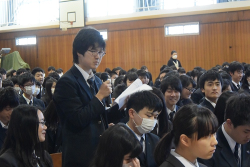 各委員会の活動報告が終わると、制限時間いっぱいまで次々に手が挙がり、生徒会の一員として建設的批判と次年度への提案を繰り広げました。時にはユーモアに富んだ意見もあがり、生徒会自治活動の楽しさを生み出していました。