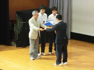 ふれあい集会とは、水曜日の8時45分より講堂にて行われる生徒会主催の行事です。そこでは生徒により、学校行事や大会参加の報告、活躍のあった生徒の表彰、あるいは委員会や学年の発表などが行われます。今回は各部活動の表彰や、1学年の「秀峰アドベンチャー」の報告、秀峰祭のTシャツ案の通知などがありました。