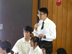 生徒会執行部や各委員会から今年度の目標や活動計画などが発表されましたが、どの提案も活動に対する意気込みが強く感じられるものばかりでした。生徒会長からは、今年度の目標を『改革と超越』と定め、今までの生徒会の基礎をひとつひとつ再検討、強化していくという話がありました。