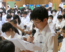 また質疑応答では、生徒が抱いている委員会への要望や質問が投げかけられました。特に初めての生徒総会だった1年生が堂々と質問をする姿は、積極的に生徒会活動に取り組もうという意気込みが感じられました。