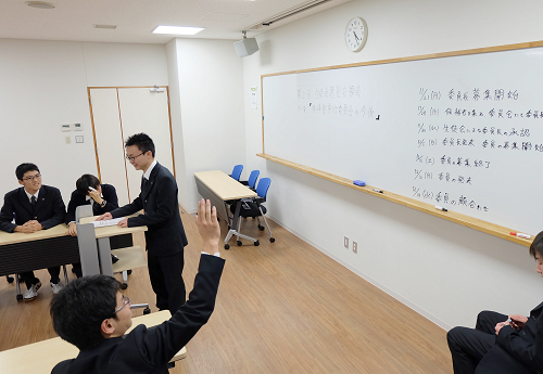 まずはじめに、平成29年度第8回秀峰祭実行委員会の年内発足へ向けて、今後の具体的なスケジュールの確認と承認が行われました。学年の垣根を越えて、参加者した生徒たちは誰もが臆することなく発言し、非常に生産性の高い意見交換が行われました。秀峰祭実行委員長に求められる資質について話が及ぶと、生徒たちの議論はますます熱を帯びていきました。