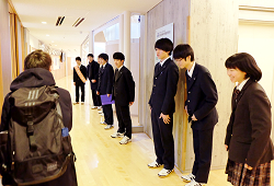 1月23日(土)の早朝、さっそく校門や昇降口に立ってあいさつをする候補者の姿が見られました。