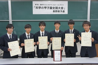 3月にさいたま市で行われる科学の甲子園全国大会に県代表として出場します。よい報告ができるよう準備を進めていきます。応援よろしくお願いします。