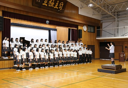 音楽祭は 2部構成となっており、第1部では各クラスの合唱と全体合唱を行いました。これまでの練習の成果を発揮し、力のこもった歌声を講堂に響かせました。合唱を通して、クラスだけでなく全校生徒の団結力を深めることができました。