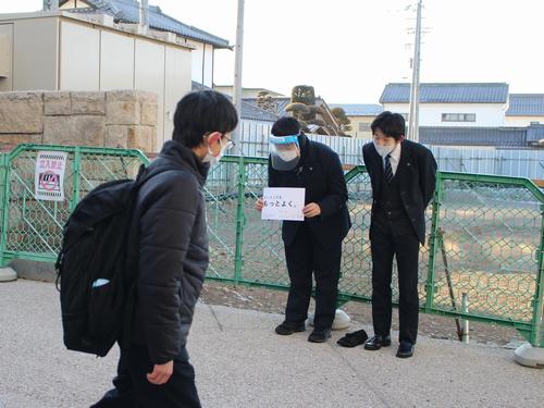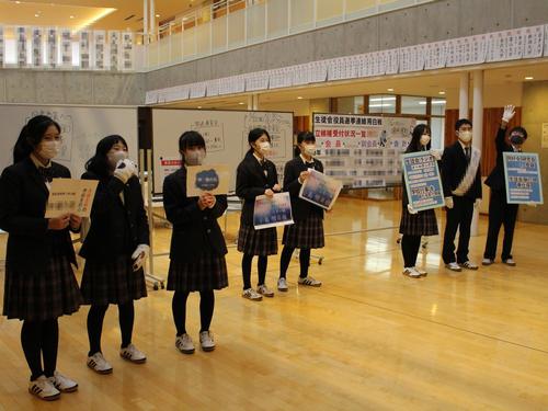 2021.01.22 生徒の活動 生徒会役員選挙運動がはじまりました Tweet 今年も来年度の生徒会執行部を決める、生徒会選挙の時期となりました。今年は生徒会長、副会長、会計に計11名の候補者が名乗りをあげ、1月21日(木)から2月2日(火)までの間、それぞれ選挙運動を行います。 選挙運動開始日の朝、さっそく校門や昇降口に立つ候補者の姿がありました。厳しい寒さの中、彼らを支える生徒たちも一緒になり、登校する生徒に挨拶をしていました。 執行部となったときにどのような生徒会を目指すのか。これからの動向に注目です。 前の記事 次の記事