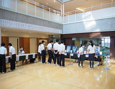 8月26日(金)、今年の秀峰祭のポスター、パンフレットの表紙を決める投票が行われました。3、4年生が美術の授業の一環で制作した作品の中から6作品が、候補として常念棟一階アトリウムに並びました。