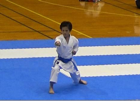 私は、秀峰に入学するため、この大会までは何度か空手をやめようと思った時期がありました。ですが、去年のこの大会での成績は、形は二位、組手は四位と悔しい結果になりました。だから、今回の大会では絶対に勝つという気持ちで勉強の合間に練習をしました。その練習の成果が出せたことにより、今年は両方ともよい結果が残せました。