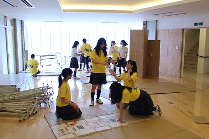 巨大なダンボールの群れが校舎のあちこちに出現し、黙々と作業に没頭する生徒たちが見られました。教室や校舎の装飾が進むにつれ、普段とは違った文化祭独特の雰囲気に生徒たちの意気込みもますます高まりをみせているようでした。