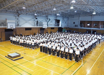第1部は、各クラスの合唱と全体合唱です。これまでの練習の成果を発揮し、迫力ある歌声を講堂いっぱいに響かせました。音楽を通して、クラスだけでなく全校生徒の団結がより高まったようです。