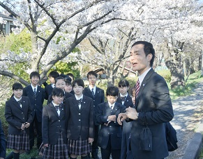 1学年では、総合の時間を利用して学校近くの薄川へ行きました。今回のテーマは「春の草花」です。晴天に恵まれ、満開の桜の下で自然と親しむ時間を過ごすことができました。春うららかな陽気に誘われて、生徒たちからも自然と笑顔がこぼれていたように感じます。