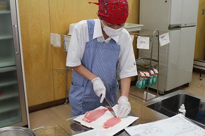 実習後はそれぞれの班で試食を行い、「味がちょうどいい」「もう少しスジを切ったほうがよかったかも」など、次に活かすことができそうな感想もたくさん聞こえてきました。