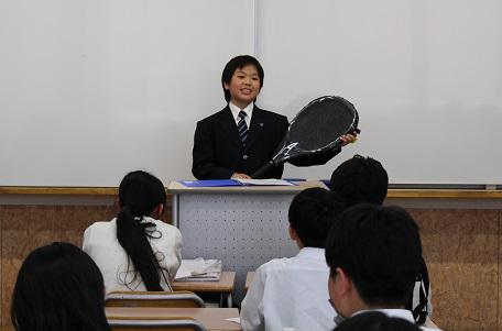 発表者が1分間のスピーチで、持参したものの特徴や自分の思いを堂々と英語で発表する一方で、聞いている生徒たちも、クラスメイトの発表に耳を傾け、熱心にメモを取る姿が印象的でした。