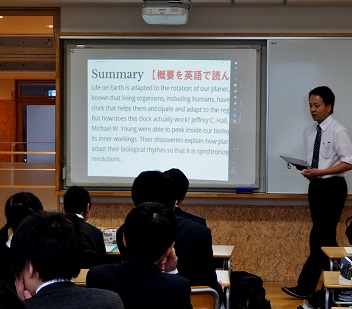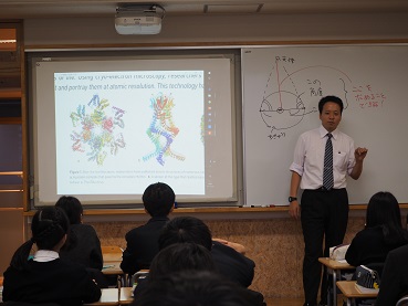 今年のノーベル賞発表直後、2学年ではノーベル賞受賞理由となった研究の概要を説明する特別授業が行われました。科学への関心が高まる絶好の機会を利用して、より多くの生徒に科学の魅力や意義を知ってもらうことがねらいです。また、最先端の情報をいち早く得るためには、英語圏からの情報を得る必要があります。そこで今回の授業では、英語で書かれた研究概要の読み解きにチャレンジする機会も設けられました。
