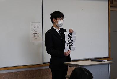 2学年では「新たな目標」とは別に今年の抱負も書き、一人ずつ発表しました。