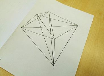 今回のACLは、グラフの性質について、グループに分かれて調べました。1人1枚の紙が配られ、1人目は自由に頂点を描き、隣の人に回して2人目は頂点を辺で結びグラフを完成させます。