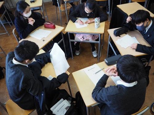 これまでに学んだ知識を使い、高校数学へと繋がる応用問題を扱いました。まずは1人で解き進め、自分の考えや解き方を明確にしました。その後、グループを作り、問題に対する考え方を議論し、共有することで解法の精度を上げることができました。またその中で、他者にわかりやすく説明することや、周りの意見を取り入れる柔軟さ、1つの解法を作り上げる達成感を得ることができたようです。最後に完成した解法を各グループが発表し合い、問題に対する理解を深めました。