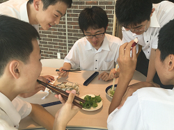 2016.07.30 授業実践 育てた野菜で試食パーティー!(3学年技術) Tweet 3学年の技術家庭科(技術分野)では、「生物育成」の単元を学習しています。 農業や畜産業にも様々な技術研究がされていることを学び、1学期の最後の授業にて、各自が育てた野菜を持ち寄り、試食会が行われました。生徒たちもレタス、ミニトマト、ベビーリーフ、ルッコラ、サラダほうれん草、ラディッシュにドレッシングをかけて、楽しんで食べていました。 前の記事 次の記事