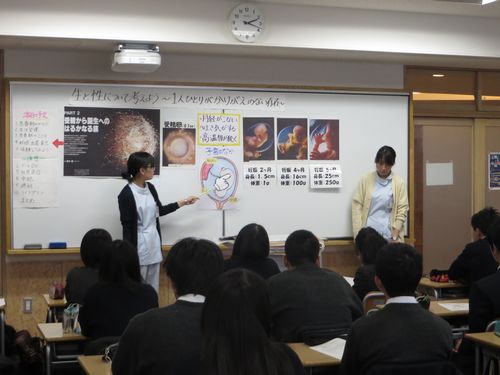 11月10日に、信州大学の教授、講師の方や同大医学部保健学科看護学専攻の学生を講師にお招きして、4学年を対象とした「性教育」講座を行いました。
