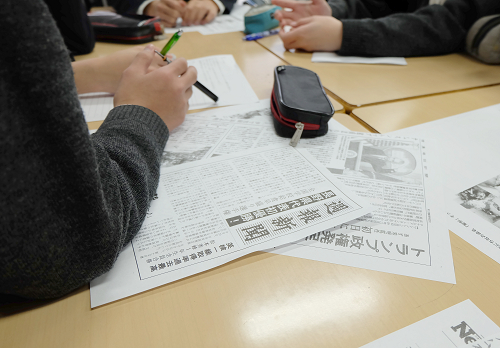 生徒たちは本物の新聞記事を参考にしながら、和気あいあいと記事を考えていました。これらの活動から、今後の社会に必要とされているリテラシー能力を身に付けてもらいたいと思います。