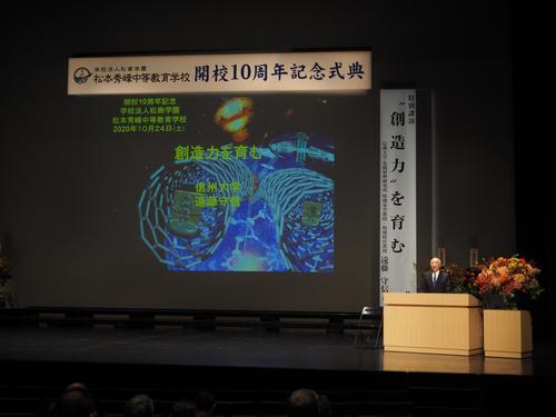 10月24日(土)、まつもと市民芸術館にて、来賓各位ご臨席のもと、本校の「開校10周年記念式典」が挙行されました。