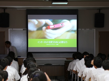 7月21日(土)、1・2学年合同でメディアリテラシーに関する講座を行いました。「インターネットを使うために必要な力」と題し、夏休みを前にして、あらためてスマホやインターネットの使い方について、講師の先生にお話していただきました。