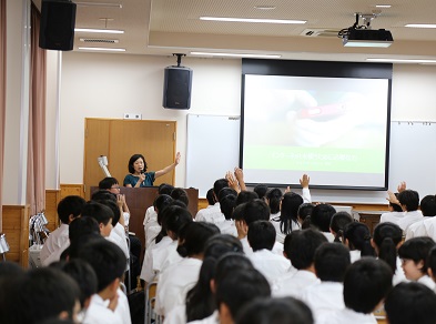 今回の講座では、生徒自身がインターネットやSNSアプリの危険性を認識し、自ら納得してルールをつくり、守っていくことが大切だというお話があり、生徒たちにとってあらためて自分の生活を振り返る良い機会となりました。新しいツールやテクノロジーが登場したときに、便利さや楽しさだけを考え、行動するのではなく、適切なルールを考え、守っていかなければならないということをきちんと理解することができたようです。