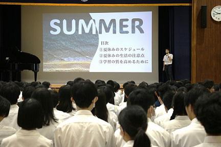 終業式を終え、いよいよ明日から本格的な夏休みがスタートします。この夏休みが、生徒たち一人ひとりにとって、校長先生のお話にあった「可能性」を見つけ高める、実り多い時間となることを願っています。
