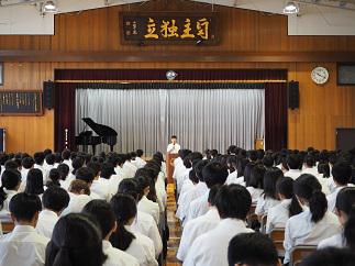 2019.07.31 学校行事 1学期終業式 Tweet 7月29日(月)、1学期の終業式が行われました。各種表彰の後、校長からは「与えられた課題プラスそれぞれが自分に課した課題に取り組んでもらいたい」という激励と、「睡眠の重要性について最新の知見を紹介しながら、残されている研究課題について生徒のみなさんで取り組んでいってもらいたい」ということが述べられました。 6年生の生徒代表の挨拶では、受験生として勝負の夏に立ち向かう強い決意が感じられました。この夏休み、それぞれの生徒が主体的に、心身とも健康に過ごしてもらいたいです。 前の記事 次の記事