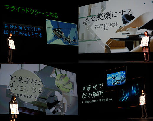 その後に行われた秀峰立志式。生徒主体で企画・運営を行い、自身の夢や希望を大勢の前で語りました。