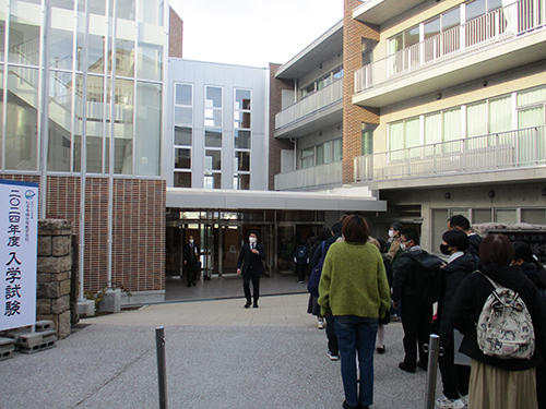 受付を終え、試験室に向かうお子様の姿が見えなくなるまで見送る保護者の皆さまの温かな愛情に触れ、本校教職員一同、受験生の努力に応えるべく万全な入学試験の実施をと、改めて心に刻み臨ませていただきました。